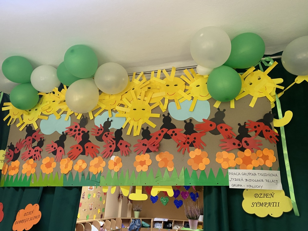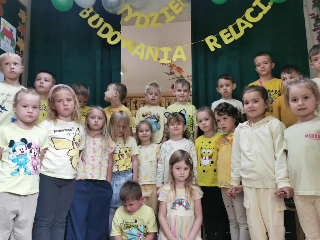 Od poniedziałku w naszym przedszkolu zaczął się Tydzień Budowania Dobrych Relacji. Wszystkie dzieci przyszły do przedszkola ubrane na żółto, był to dzień poświęcony sympatii. Wtorek to dzień pomarańczowy, dzień dobrego słowa. Środa dzień czerwony, dzień przyjaźni. Czwartek dzień zielony, dzień dobrych uczynków. Piątek dzień niebieski, dzień szacunku i empatii.