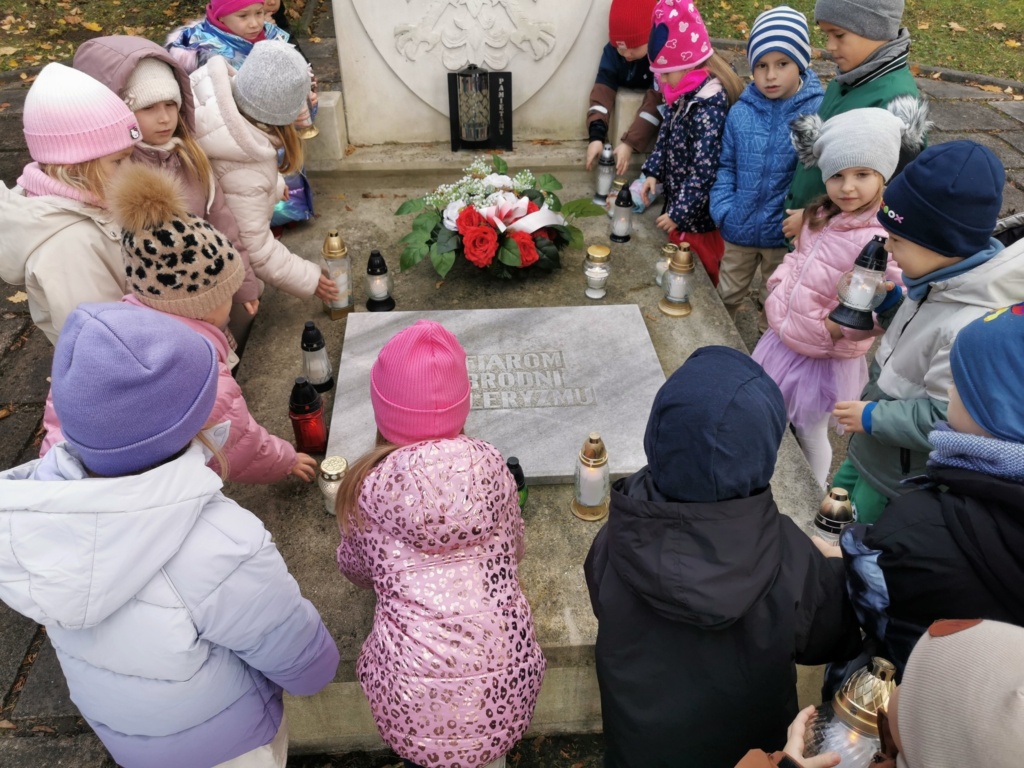 Dziś przedszkolacy z grupy III i IV odwiedziły miejsce Pamięci Narodowej – Cmentarz na „Zawięzieniu” aby uczcić pamięć bohaterów, którzy walczyli o wolność naszej Ojczyzny.