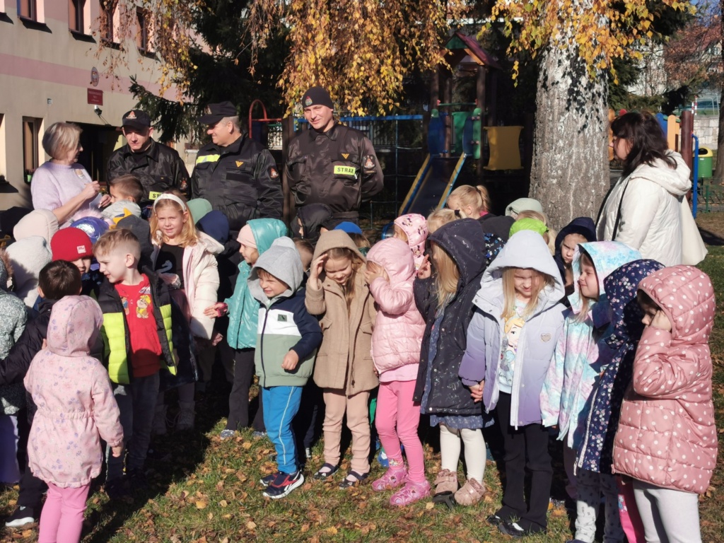 Dziś odbyła się próbna ewakuacja z udziałem straży pożarnej – Komenda Powiatowej Państwowej Straży Pożarnej w Pińczowie. Dzięki pozorowanemu zadymieniu dzieci mogły zobaczyć, jak wygląda prawdziwa akcja ratunkowa i jak ważne jest zachowanie spokoju w sytuacji zagrożenia.
