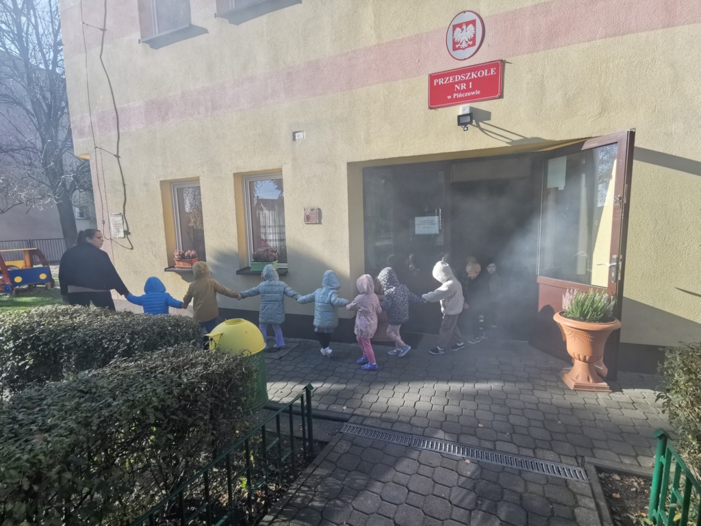 Przedszkolaki spisały się na medal – szybko, bez paniki i zgodnie z zasadami opuściły budynek.