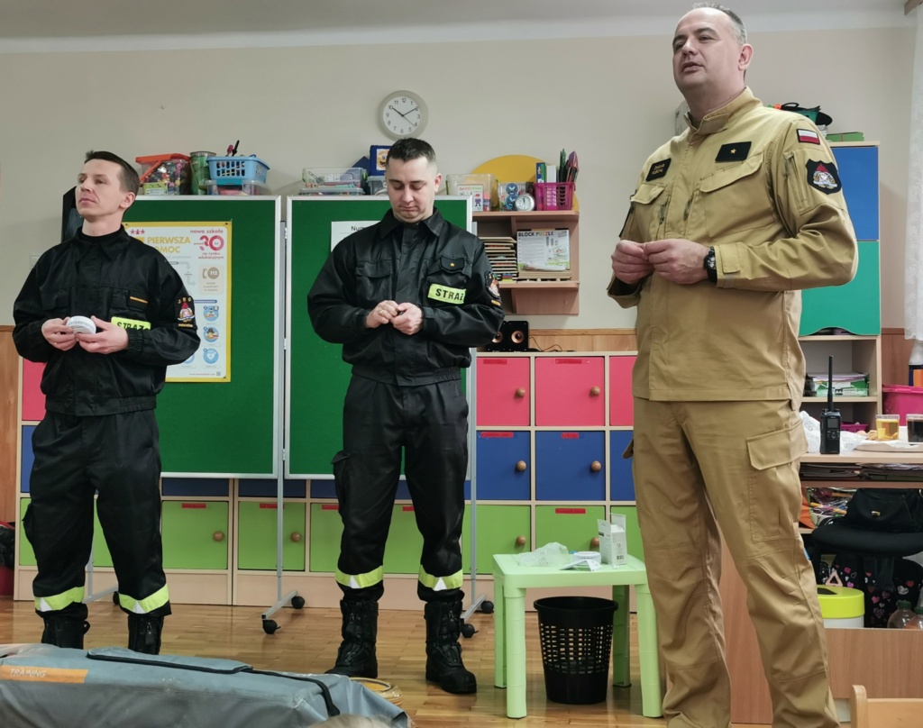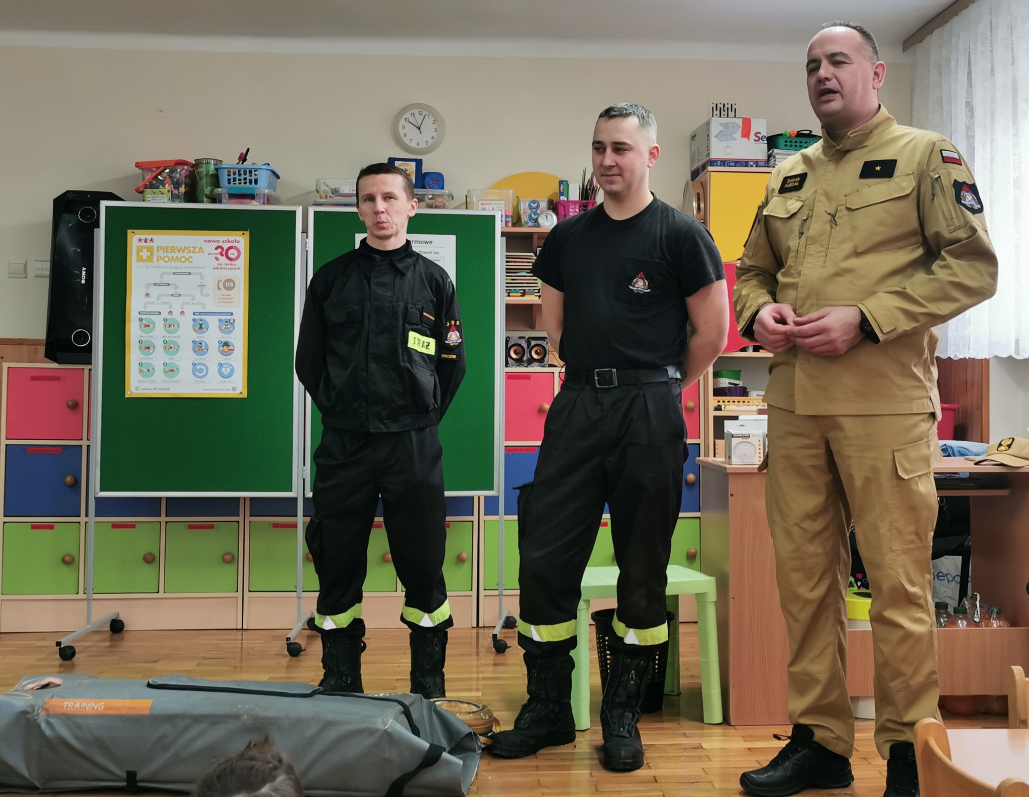 asp. Damianem Wleciałem, asp. Łukaszem Głombińskim, st. str. Krystianem Brodą poświęcone pierwszej pomocy oraz bezpieczeństwu przeciwpożarowemu