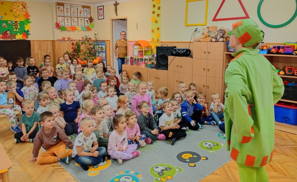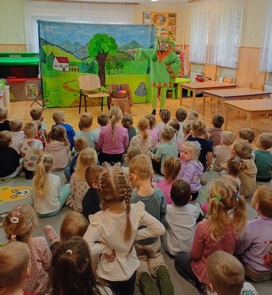 W dniu 28.10.2025r. dzieci z Przedszkola nr 1 w Pińczowie obejrzały wspaniałe przedstawienie teatralne pt. „O Babci, krasnoludkach i kolorowych królikach”. Dzieci z ogromnym zainteresowaniem śledziły wesołe przygody bohaterów, którzy w zabawny sposób przypominali o sile dobroci, przyjaźni i pomagania innym.