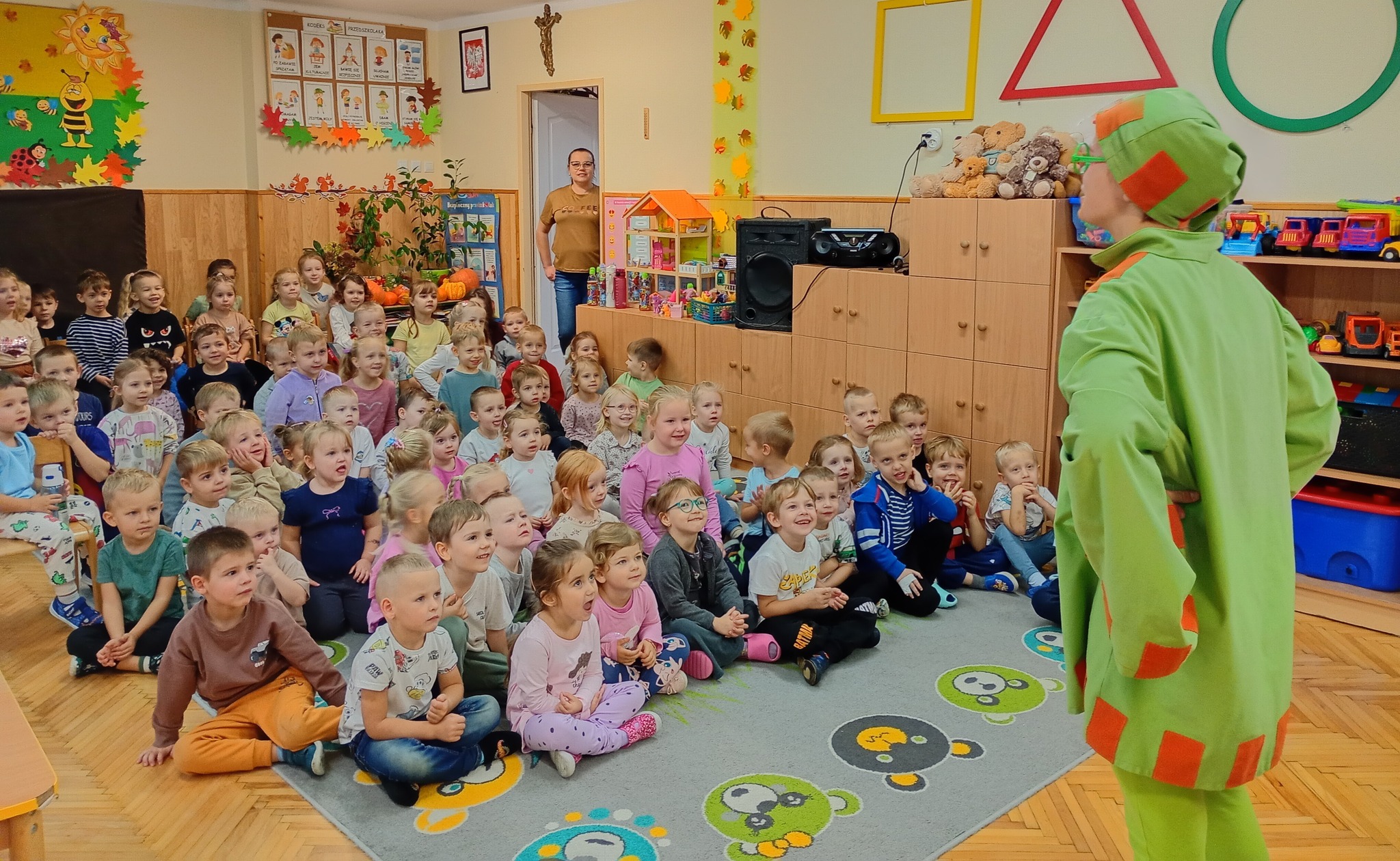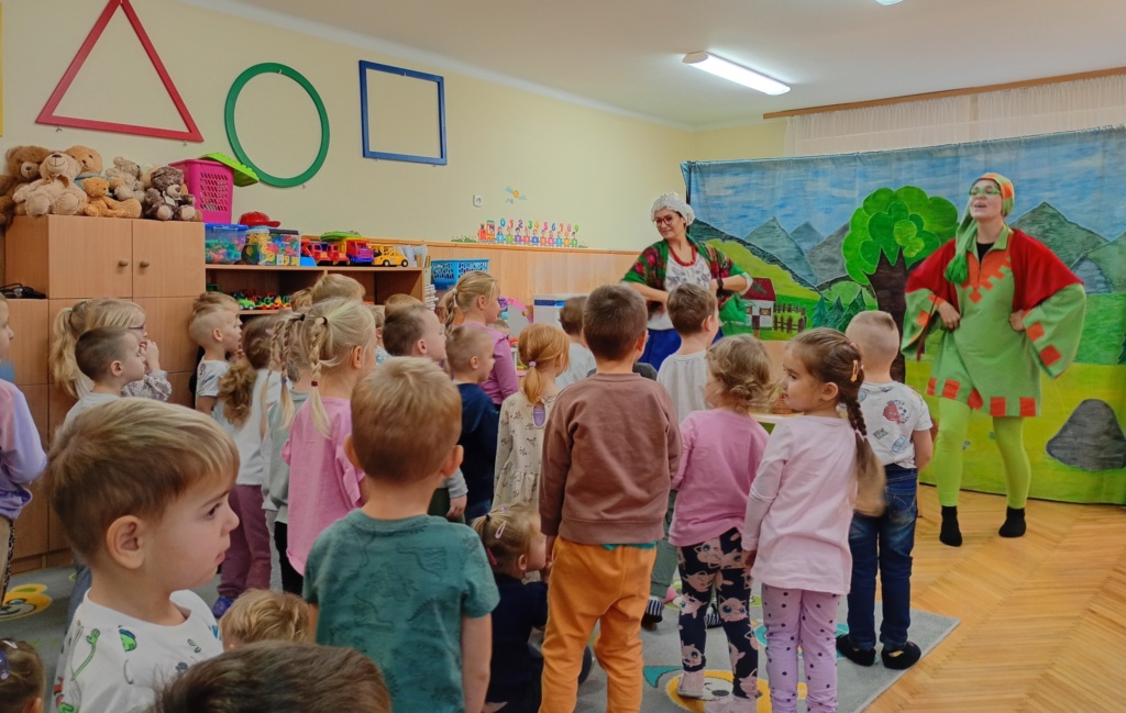 Barwna scenografia, muzyka i humor sprawiły, że mali widzowie bawili się doskonale, aktywnie uczestnicząc w spektaklu. Spotkanie z teatrem dostarczyło dzieciom wielu emocji, radości i niezapomnianych wrażeń